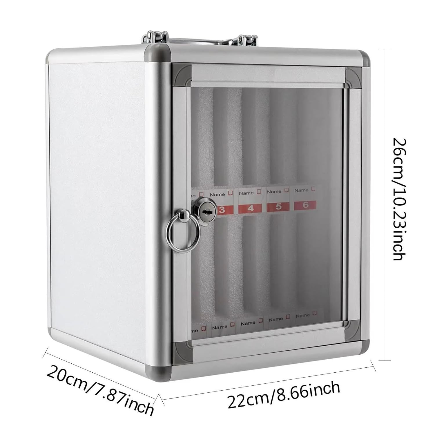 Quality Material‘: Phone Storage Cabinet is made from aluminum alloy, Acrylic, MDF, this storage box is designed to withstand daily use in busy classroom environments