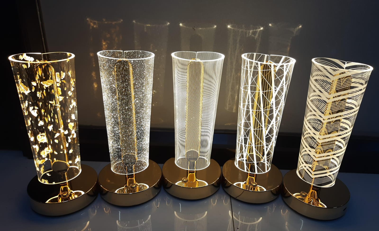 TITLE: 3D Acrylic LED Night Lamp with Gold Base – Starry Sky Waist Design 3, Touch Control Cordless Decorative Table Light for Bedroom, Living Room & Home Decor (Pack of 1, Plastic Body, MULTI DESIGN)