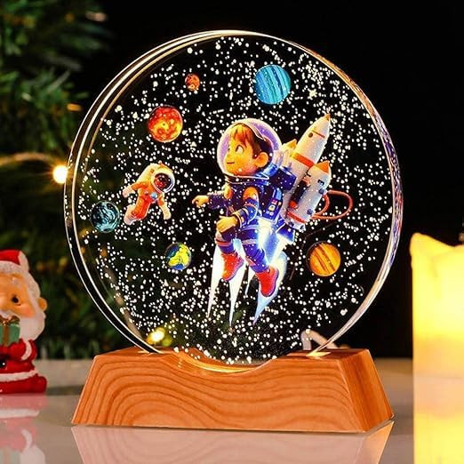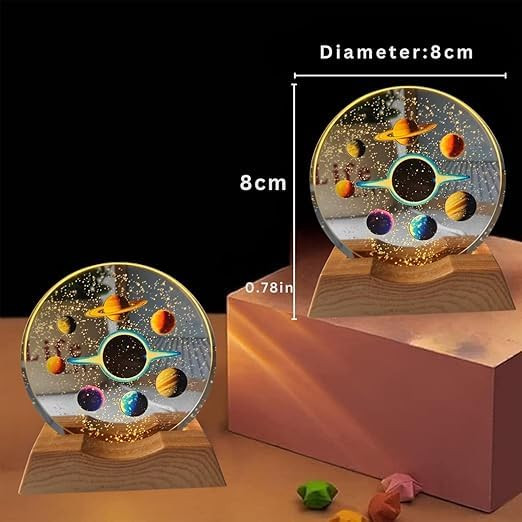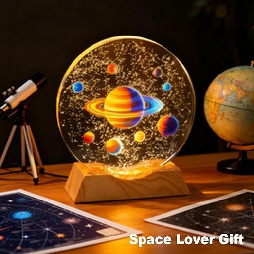 Bring the beauty of the universe into your home with this Solar System Crystal Night Light. Expertly crafted from premium clear crystal, the 3D laser-engraved solar system appears suspended inside the glass orb, creating a breathtaking visual effect when illuminated. The warm LED wooden base enhances the details of the planets while providing a soft ambient glow, making it perfect as a bedside lamp, night light, or decorative centerpiece. This crystal galaxy lamp is not only a stunning decorative piece but also an educational gift that sparks curiosity about space and astronomy. Whether placed in a child’s bedroom, office desk, or living room, it adds elegance and cosmic charm to any setting. A thoughtful and unique gift for kids, students, teachers, and space lovers.