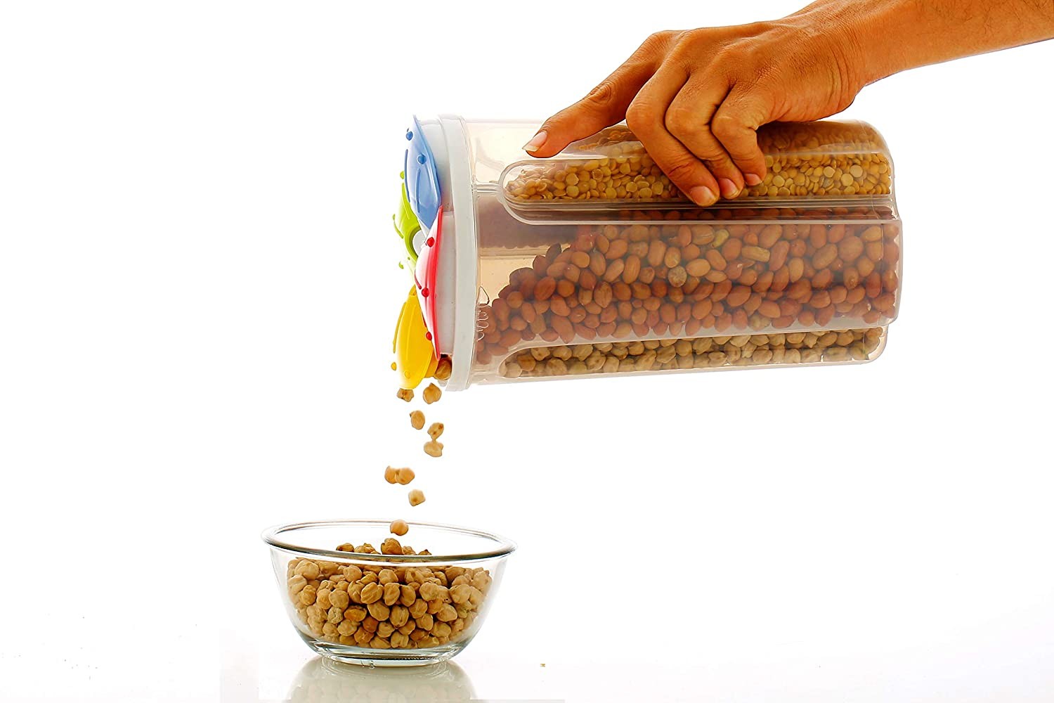 - Easy to Use Easy Clean Capacity: 2100ML per Jar. Each section can hold upto 600ml. Clear View, Side Window, Long-Lasting, Sturdy, Scratch Resistant & Unbreakable Container