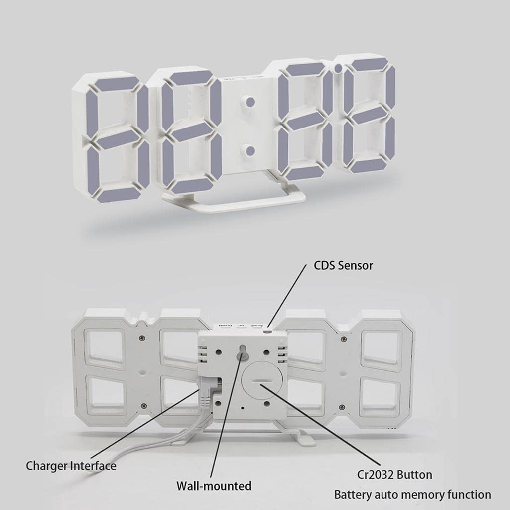 Title : Digital 3D LED Wall Clock Alarm Clock Snooze 12/24 Hour Display W_Blue