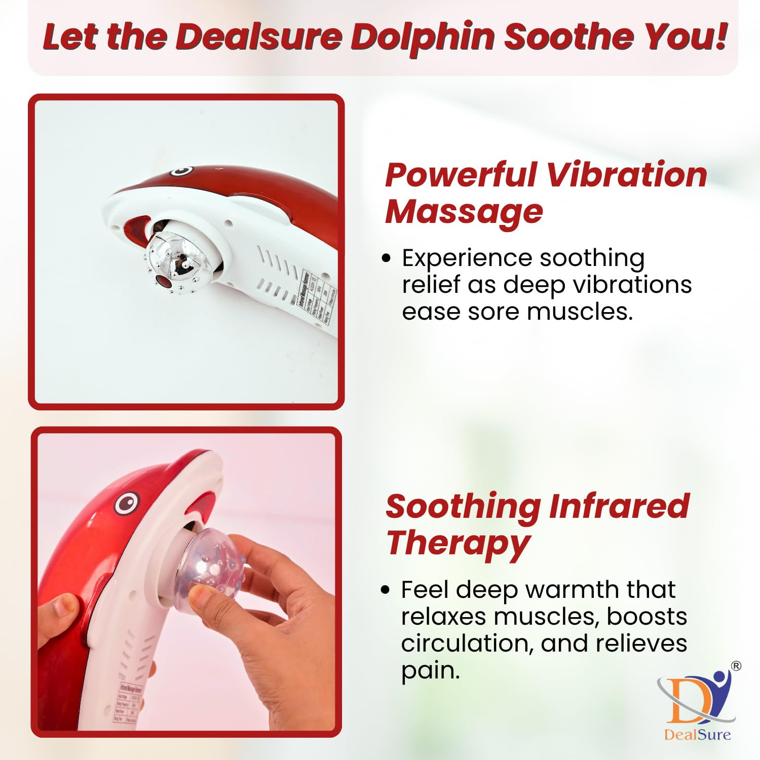 TITLE NAME:- Dolphin Massager for Pain Relief – Handheld Dolphin Massager with Vibration & Infrared Therapy – Plug-in Full Body Massager for Stress Relief