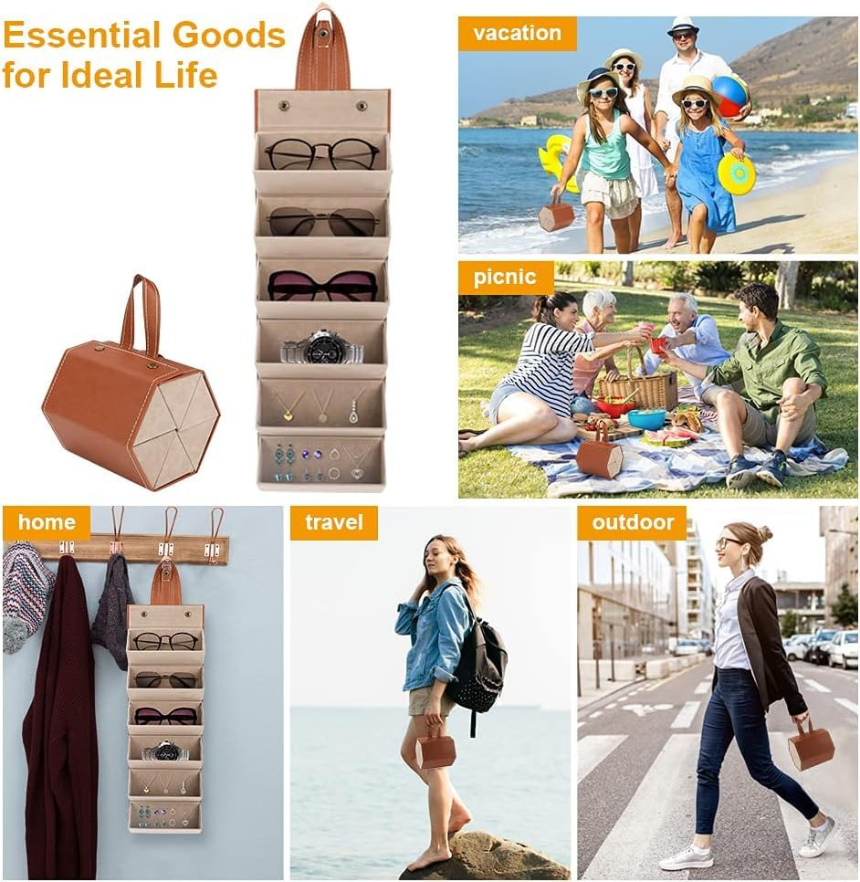Title : 6 Slots Sunglasses Organizer Box || Men Women Eyewear Holder || Wall Hanging Glasses Holder || Foldable Eyeglasses Storage Box || Multiple Sunglasses Spectacle Case