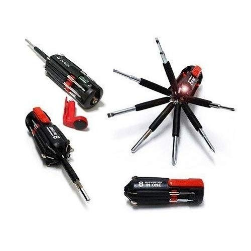 - PRODUCT DETAILS:- 8 in 1 Multi Function Screwdriver Magnetic CRV steel alloy screwdriver heads // Material:- Steel, plastic // Color:- Black, Red // Dimensions:- 13″ x 4.50″ x 5″ Cm.