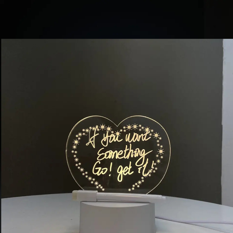 TITLE : Acrylic Clear Message Board Table LED Lamp With Brown Box and White Writing Pen Acrylic Dry Erase Board, Reusable LED Light up Message Board with Stand and Dry Erase Pen USB Letter Message Boards