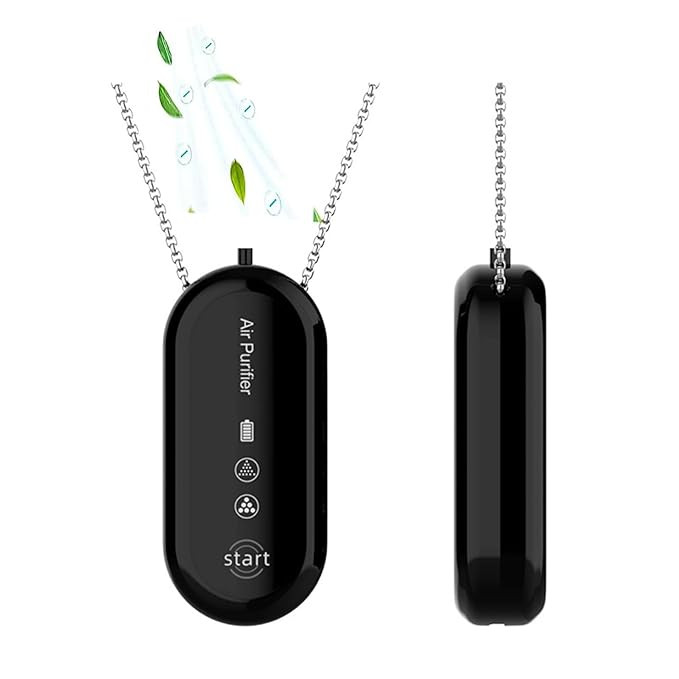 - Quiet Running: Light, small, and silent. Portable air purifier necklace can be hung around your neck, hung in your car, put in your pocket, and work on your desk. Let the freshness air always be with you.