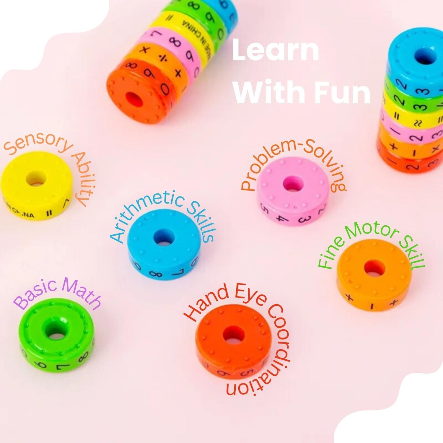 - 🔢 Safe and Quality Material: Made of high-quality, Non-Toxic, BPA-free ABS Plastic Material our Magnetic Number Blocks are safe on little hands and are environmentally friendly. The edges are smooth, durable, and safe. Equipped with magnets between each disc, the Math Cylinder holds great, rotates smoothly, and is easy to detach.