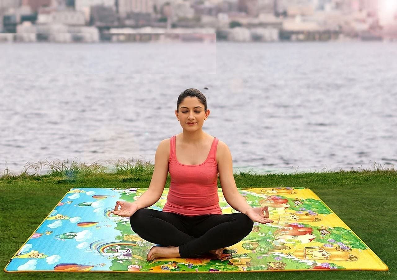 - [REVERSIBLE & FOLDING] Double-sided theme playmat. Baby care play mat packed size 6.5 X 6 Feet. Save space and easy to carry,double-sided theme playmat for infant,also can be used as yoga mat.