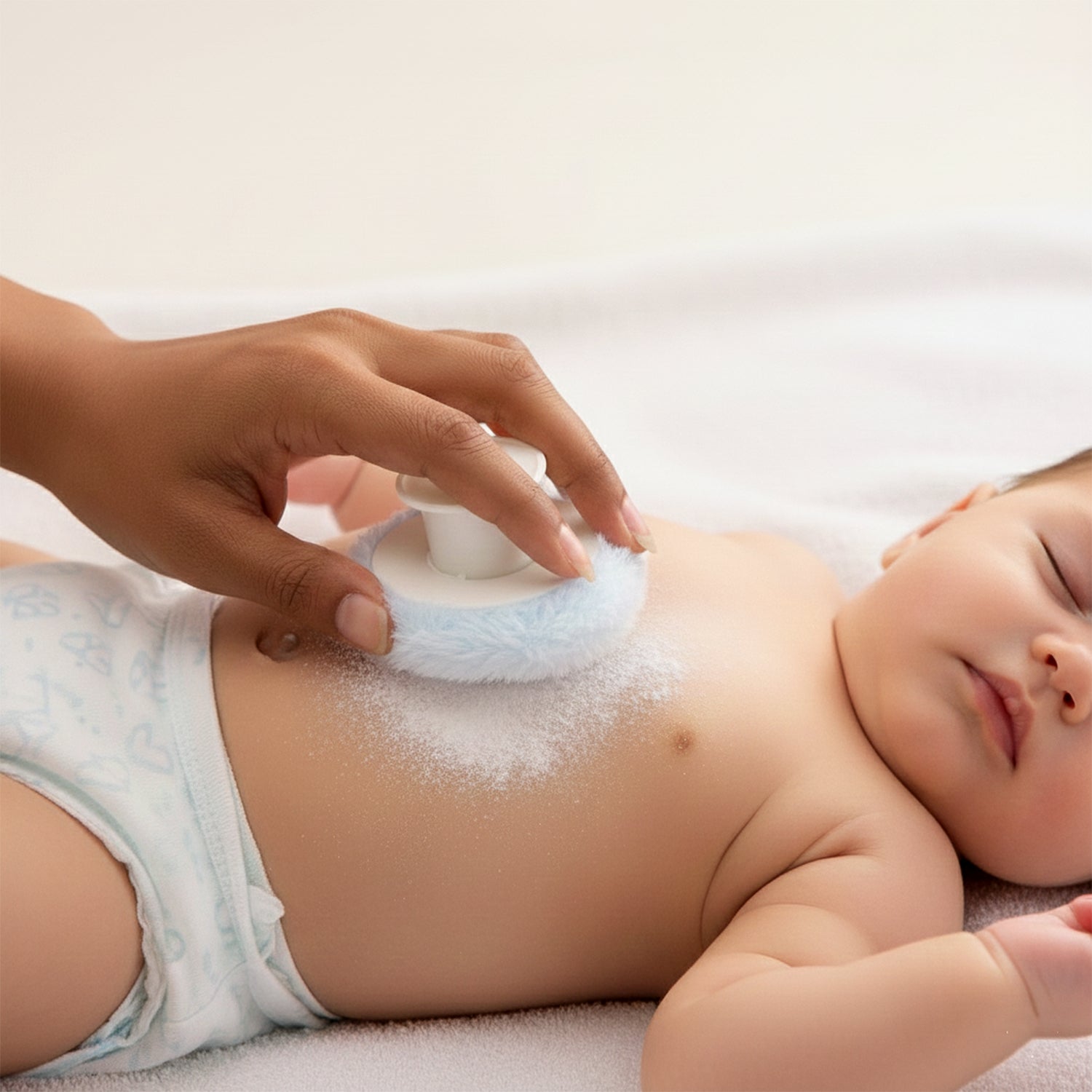 This baby powder puff storage box is thoughtfully designed to make daily infant skincare safe, hygienic, and convenient. The set includes a soft applicator puff housed inside a smooth, easy-to-open container that helps dispense powder evenly without mess. Ideal for gentle application after baths or diaper changes, it reduces direct hand contact and prevents excess powder usage. The protective transparent lid keeps the puff clean and dust-free when not in use, making it suitable for both home use and travel. Its simple design ensures comfort for babies while giving parents better control during powder application.