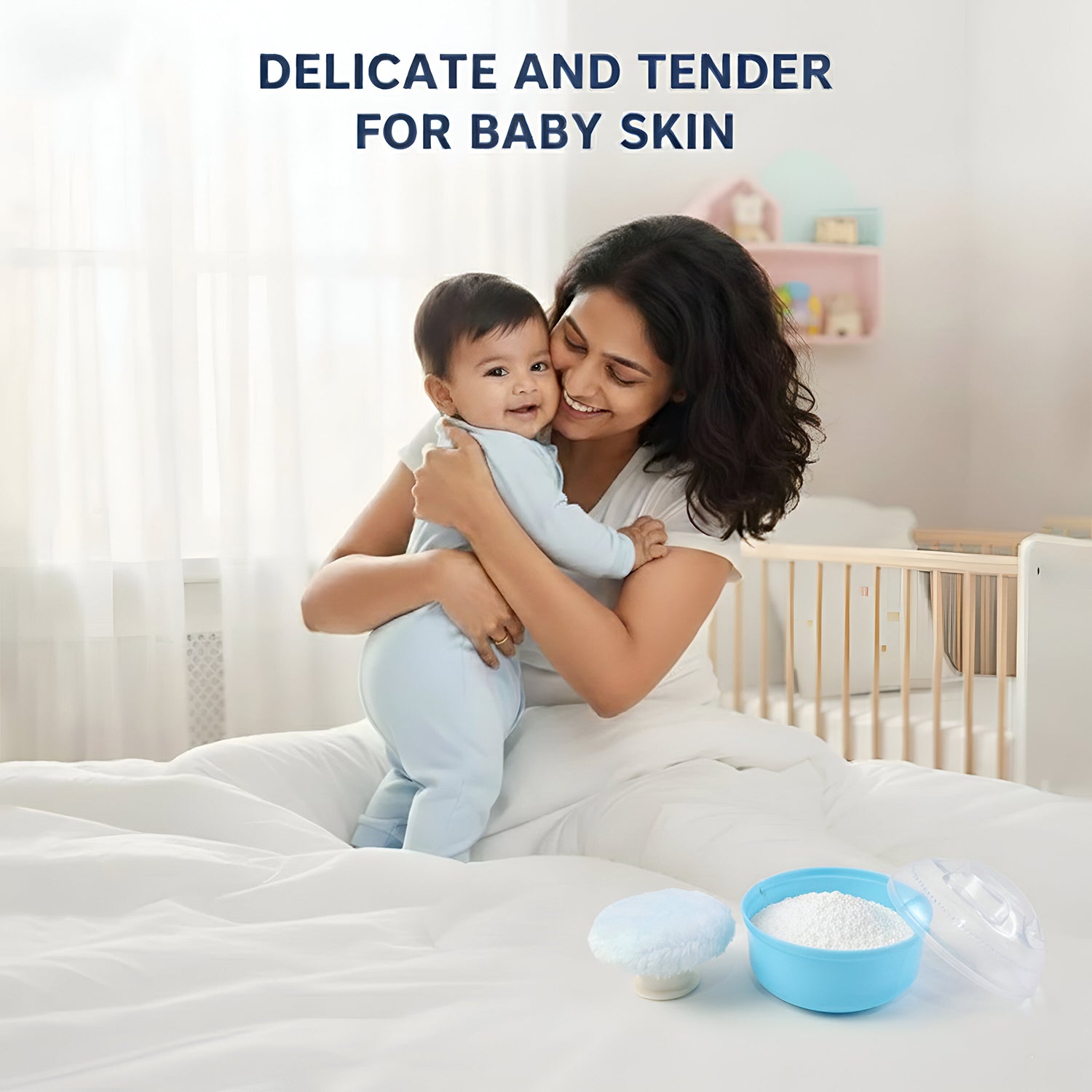 Baby Powder Puff Storage Box with Soft Applicator and Protective Lid for Gentle Newborn & Infant Skin Care – Easy Dispensing Talcum Powder Container (1 Set)