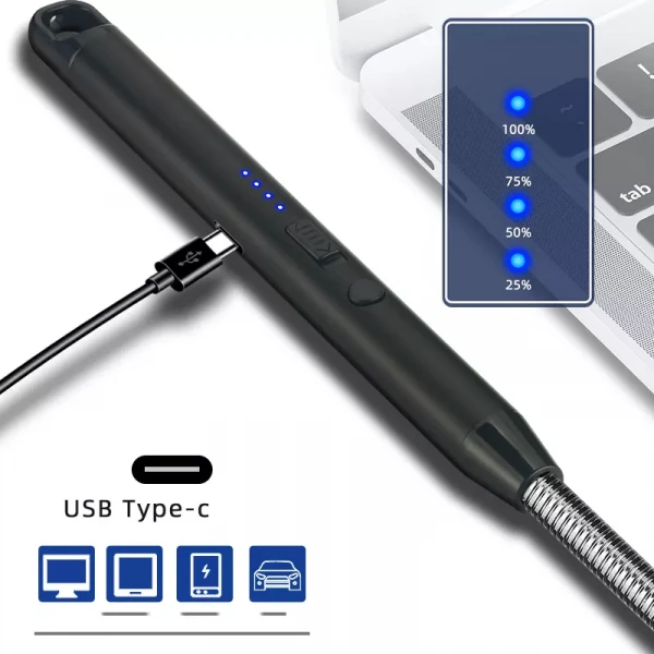 - USB type-c chargeable design offers you a longer usage cycle. Tt comes with a usb-c cable to charge. If it is fully charged, it can be used more than 300 times ignitions. which is much more environmentally friendly than refillable lighters and matches.