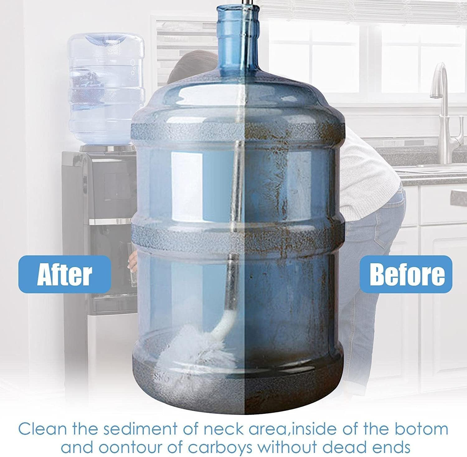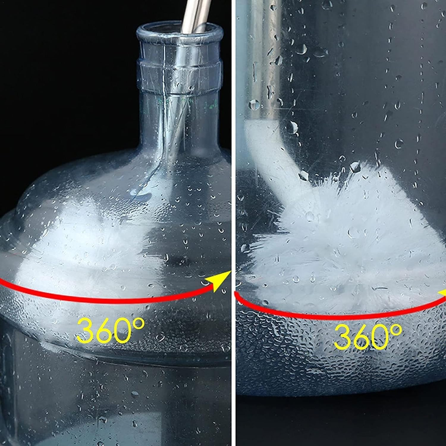 - This multi-functional brush is not only ideal for water cans but also works wonders as a water bottle cleaner, bottle washer, and sink cleaner brush. With its long handle and 360-degree rotation capability, it makes cleaning a breeze for various household tasks.
