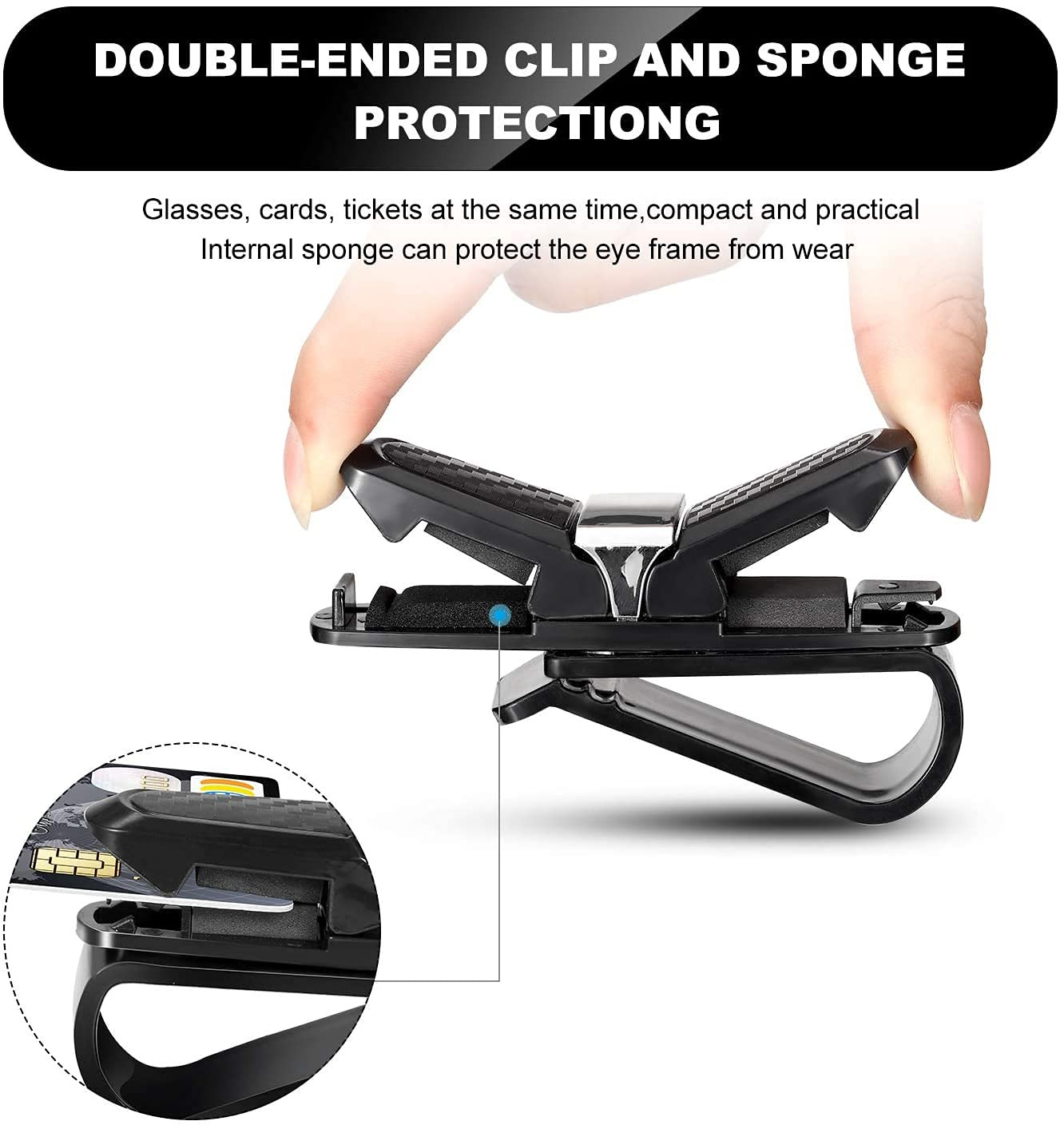- What it does: This Visor glasses holder can clip 1 pair of sunglasses and an extra card. Avoid glasses falling, scratching, loss, more safe.