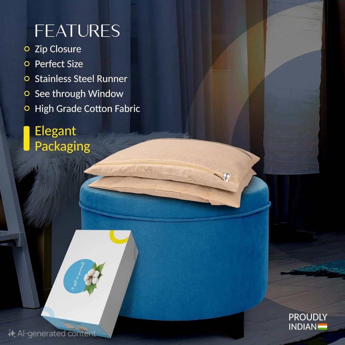 - CLOSURE & STITCHING : These saree covers comes with zip closure with metal runner. as you can see in photos saree bag contain high quality chain. The stitching of saree bags is done with trained women and ensures for quality stitching. The thread used of same color of fabric.