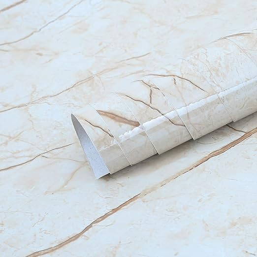 TITLE : Cream Marble Wallpaper for Wall Stickers Kitchen Self Adhesive Oil Proof Sticker | Waterproof Contact Paper Foil Sticker | Kitchen Wallpaper (Size:60 * 200 Cm) Self-Adhesive and Removable Vinyl Marble Paper for Kitchen, Wallpaper PVC Bathroom Wall Stickers, Wallpaper for Fridge, Table top, Wall, Floor, Home&Kitchen