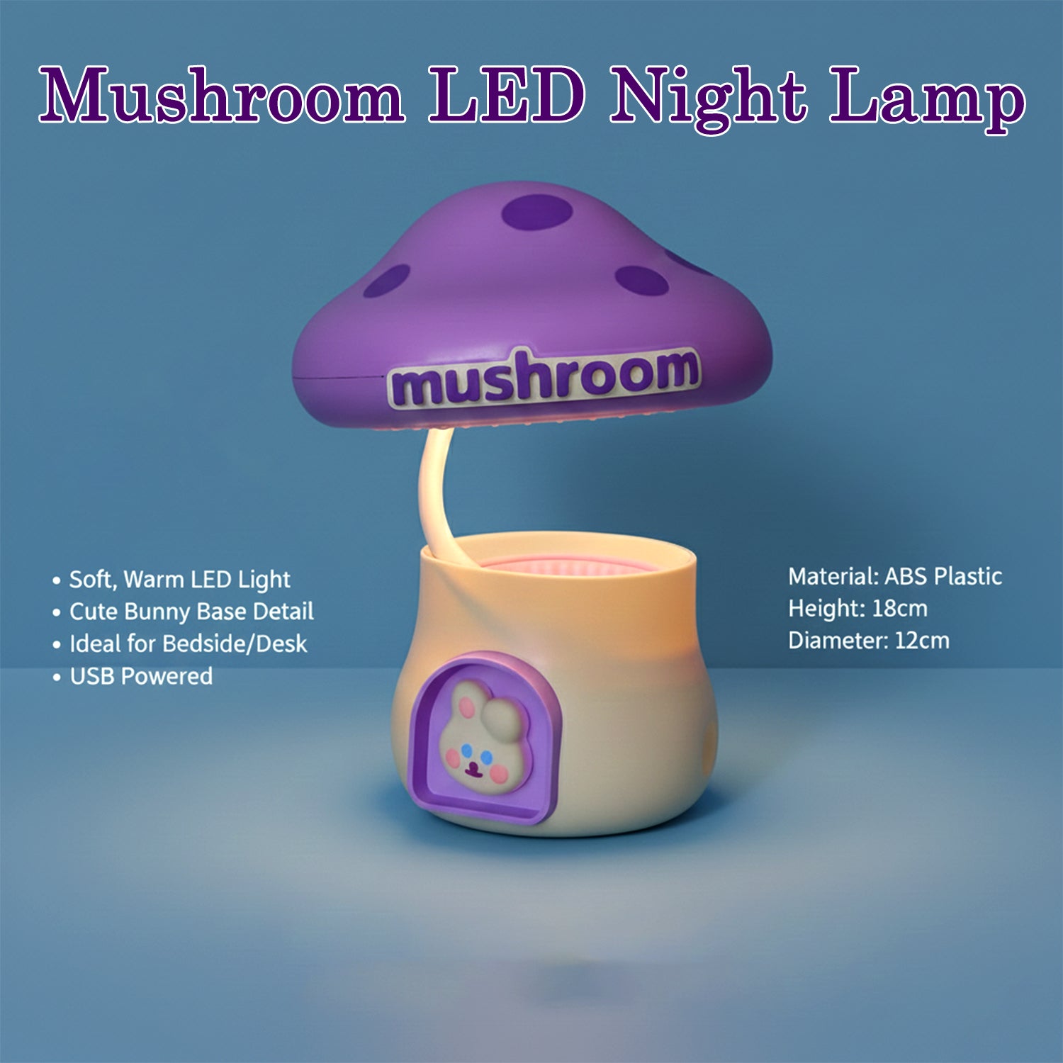 Bring a soft, magical glow to your space with this cute purple mushroom LED night lamp. Featuring an adorable cartoon mushroom design and gentle warm light, it is perfect for kids’ bedrooms, nurseries, study tables, and bedside use. The soothing illumination helps children feel safe and relaxed at night while adding a charming decorative touch to the room. Compact, lightweight, and energy efficient, this lamp also makes a lovely gift for birthdays and special occasions.