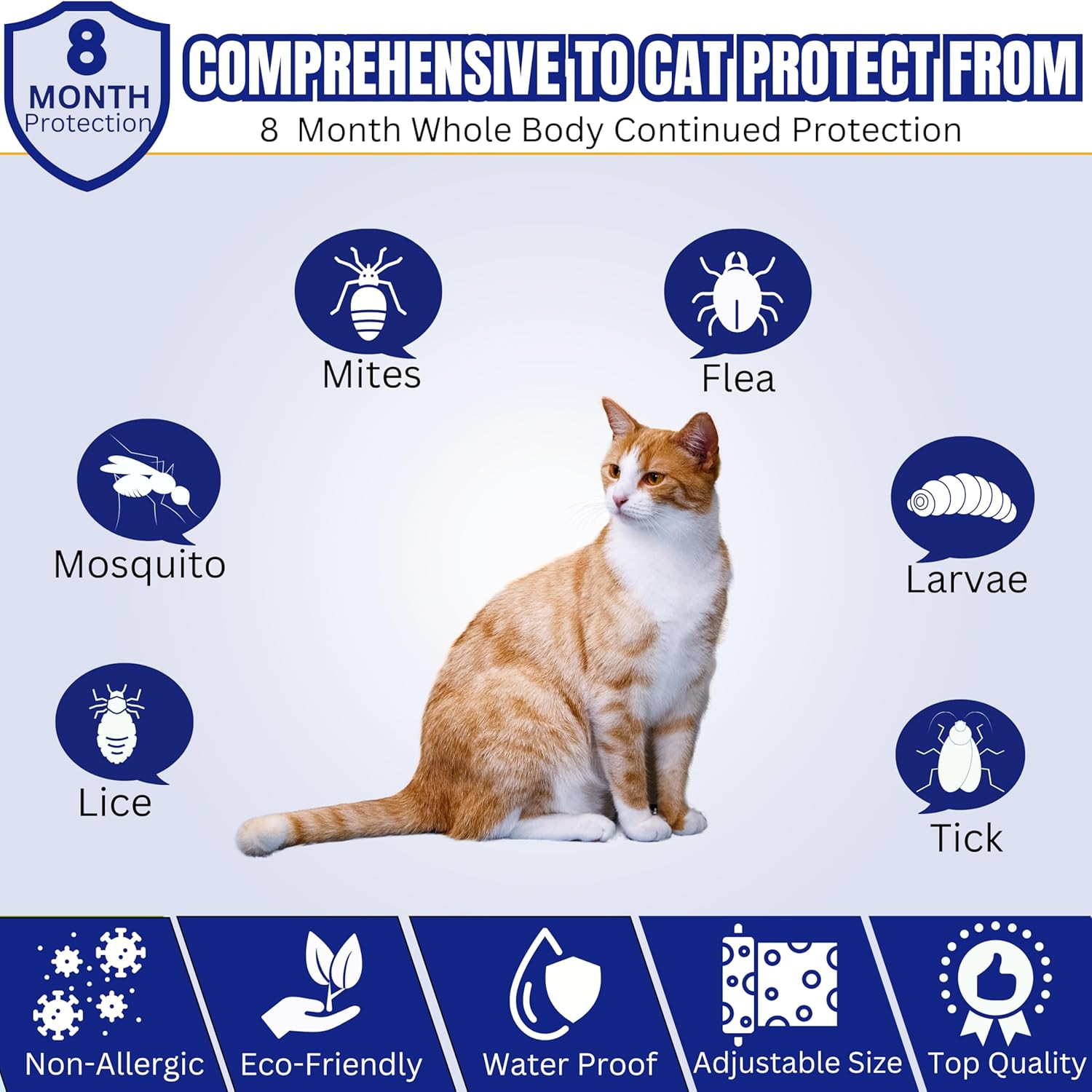 - 【ADJUSTABLE & WATERPROOF】This adjustable collar is perfect for all breeds, ensuring a secure and comfortable fit for cats of all sizes. Remains effective even during water activities, keeping your cat protected from pests at all times.