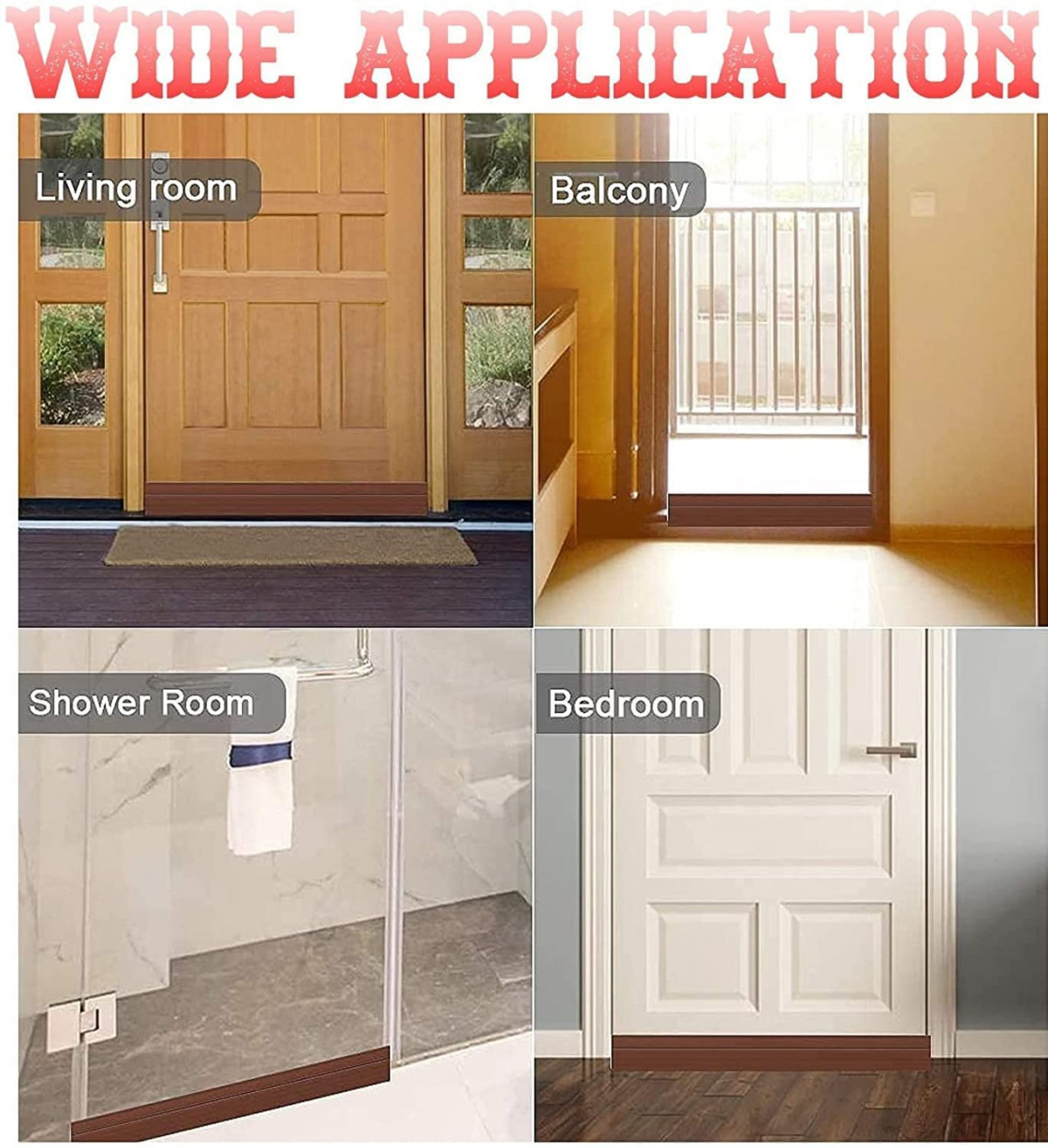 - Material – This flexible door bottom sealing strip with rubber three different height baffles on the bottom design, thick waterproof adhesive manufacturing, strong adhesive and non-degumming, can be used in bathroom or any wet environment.
