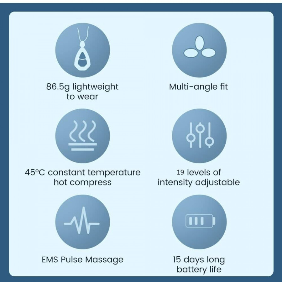 - [ MART NECK MASSAGER FOR NATURAL AND DRUG FREE PAIN RELEIF ] : Neck pain is a common complaint in India. Neck can be strained due to poor posture while sleeping, working on computer for long periods of time, jerking your neck during exercise, or using cell phone with head down. This smart neck massager simulates a hand massage to help relieve stiff muscles or tension in the neck, help relieve cervical pain/fatigue, regulate blood circulation, and bring adequate oxygen supply to your brain.