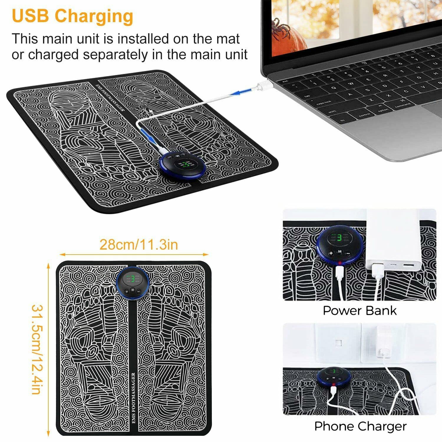 TITLE : EMS Foot Massager Pad Muscle Stimulator Blood Circulation Battery TypeElectric Foot Massager, EMS Feet Cushion, Leg Reshaping, 8 EMS Pulse Mode, 19 Strength, Bioelectric Massage, Folding Portable Mat
