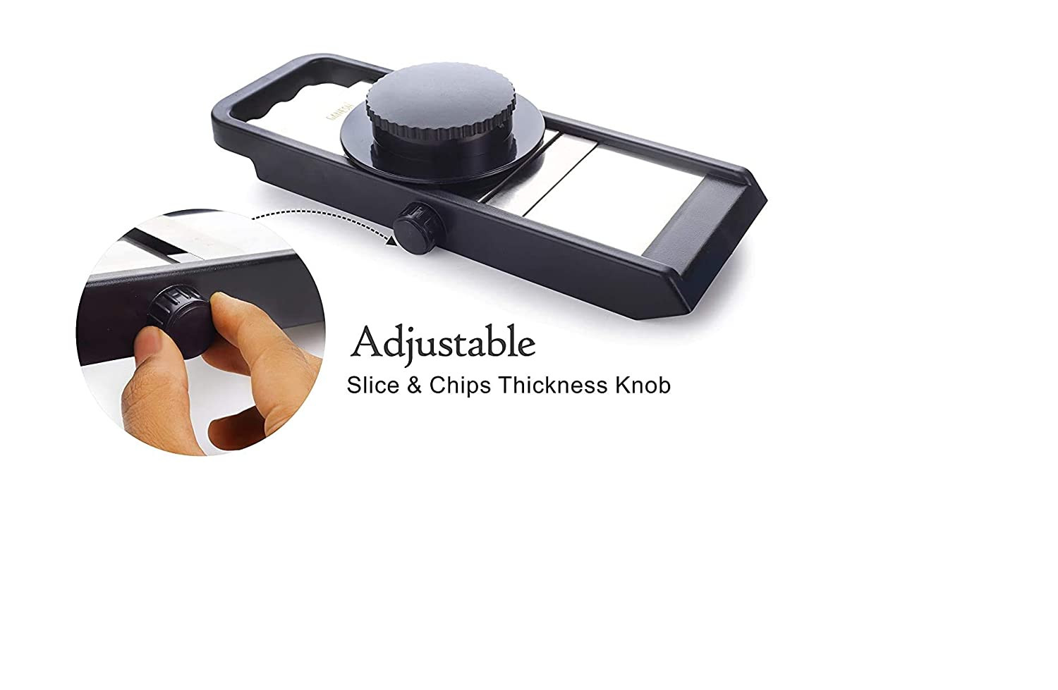 - Auto knob cuts 1mm to 5 mm cuts potatoes onion, carrots, radish, cabbages, cucumber
