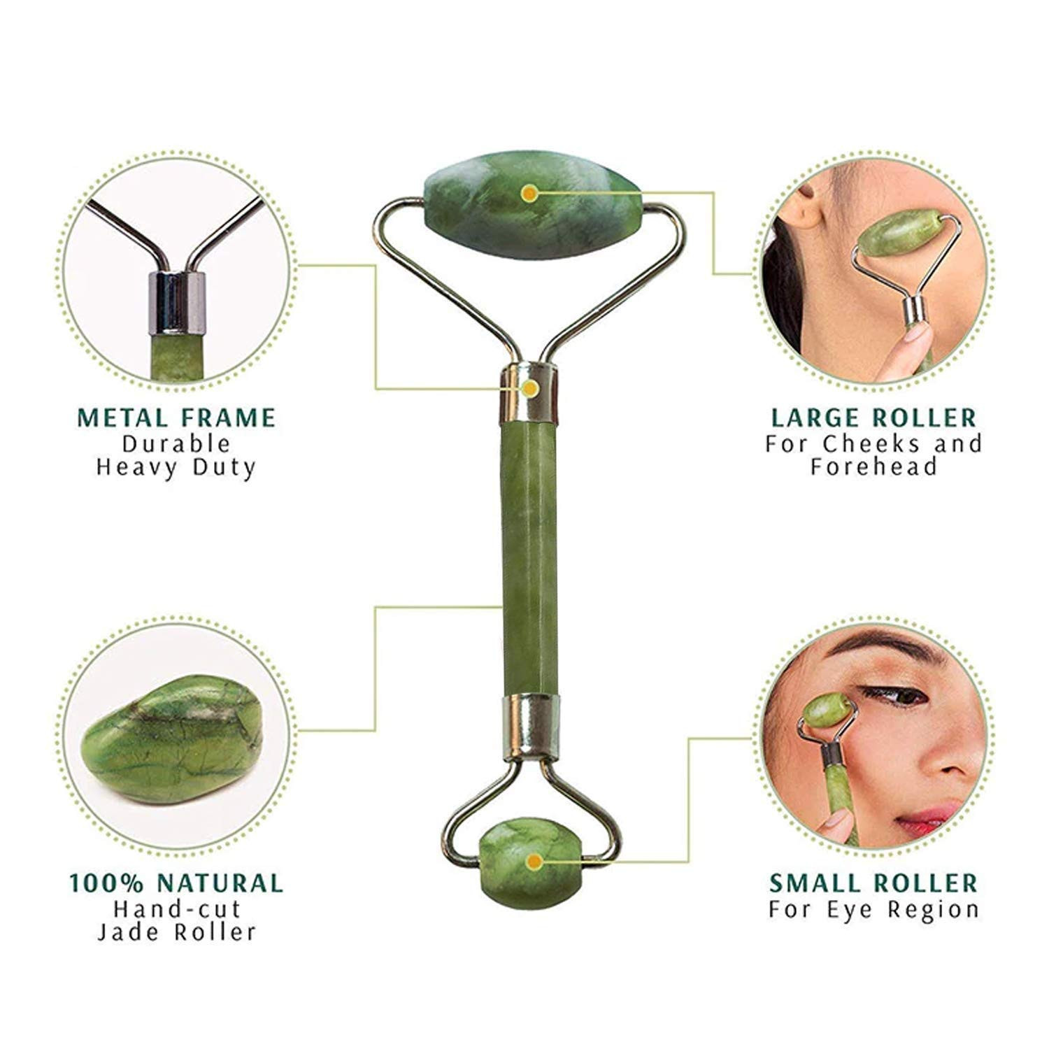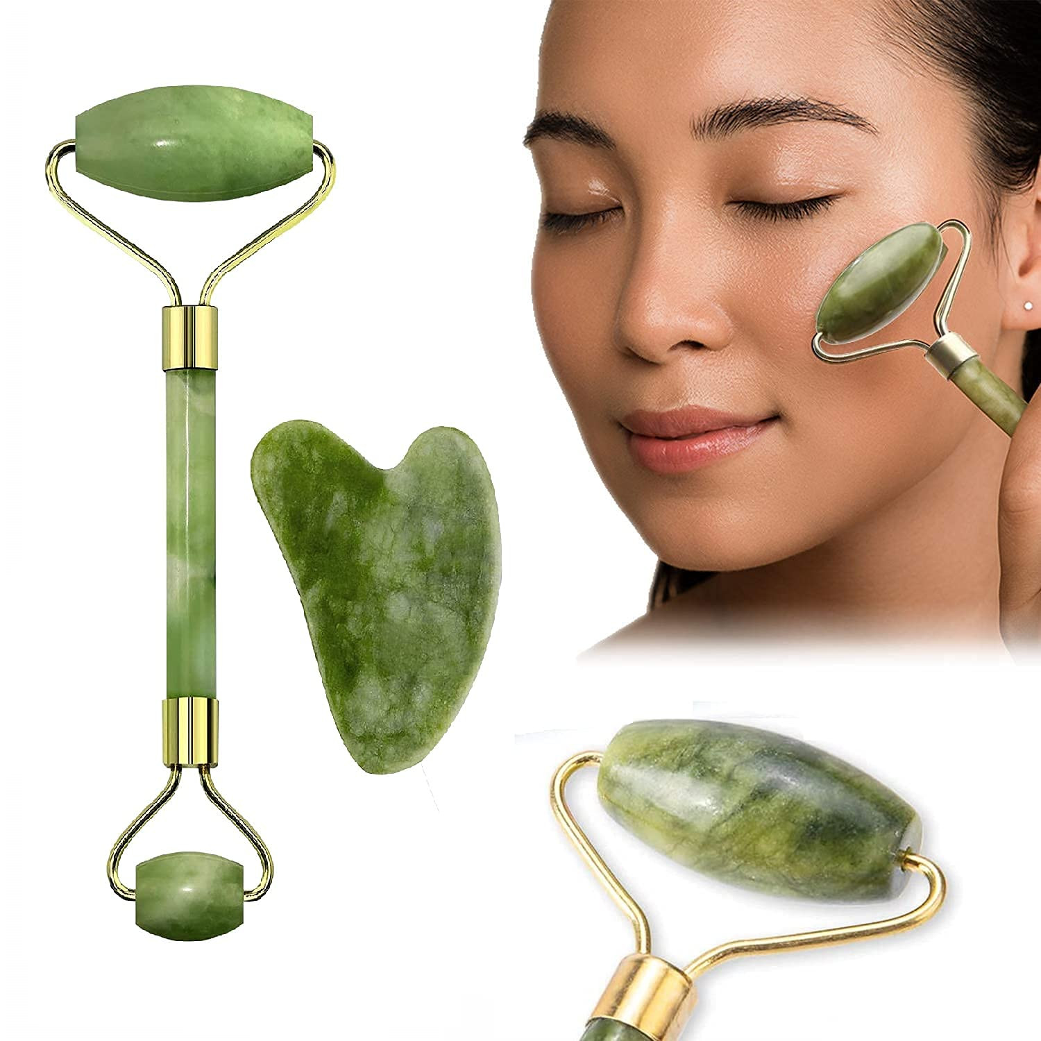 - 🌿 PREMIUM QUALITY COMBINATION – The jade face roller with Gua sha is made of 100% Orignal and certified stone. For Skin Therapy, acne-prone skin, reduce dark under eyes; Best Beauty Treatment without any chemicals or irritants.