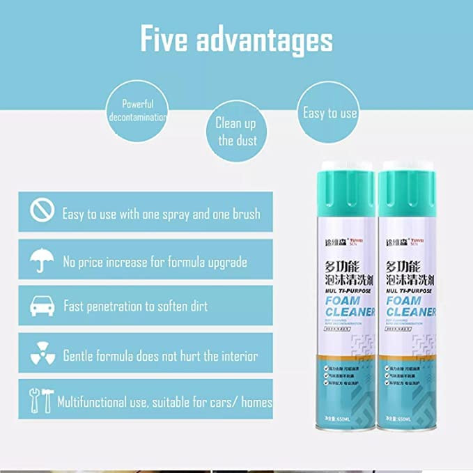TITLE : Multipurpose Cleaner Foam Spray for Car Home Carpet Dashboard Cover Seat Cushion Free Brush Foaming Car Interior Cleaner Multipurpose Foam Cleaner Spray