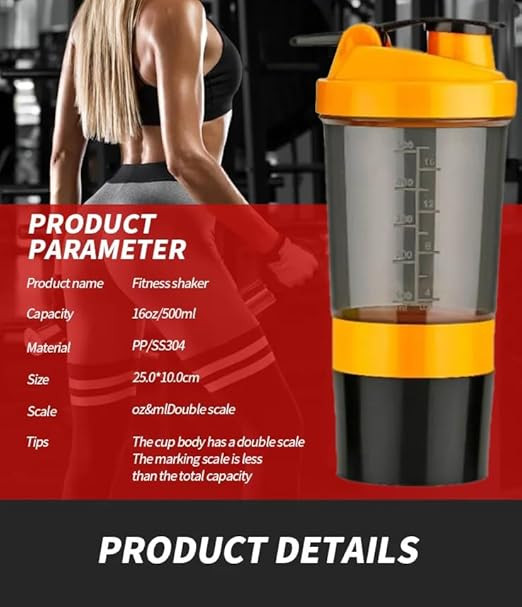 TITEL: 500 ML Protein Shaker Bottle Sipper Gym Bottle for Protein Leak Proof with Mixing Spring Ball and Storage Compartment