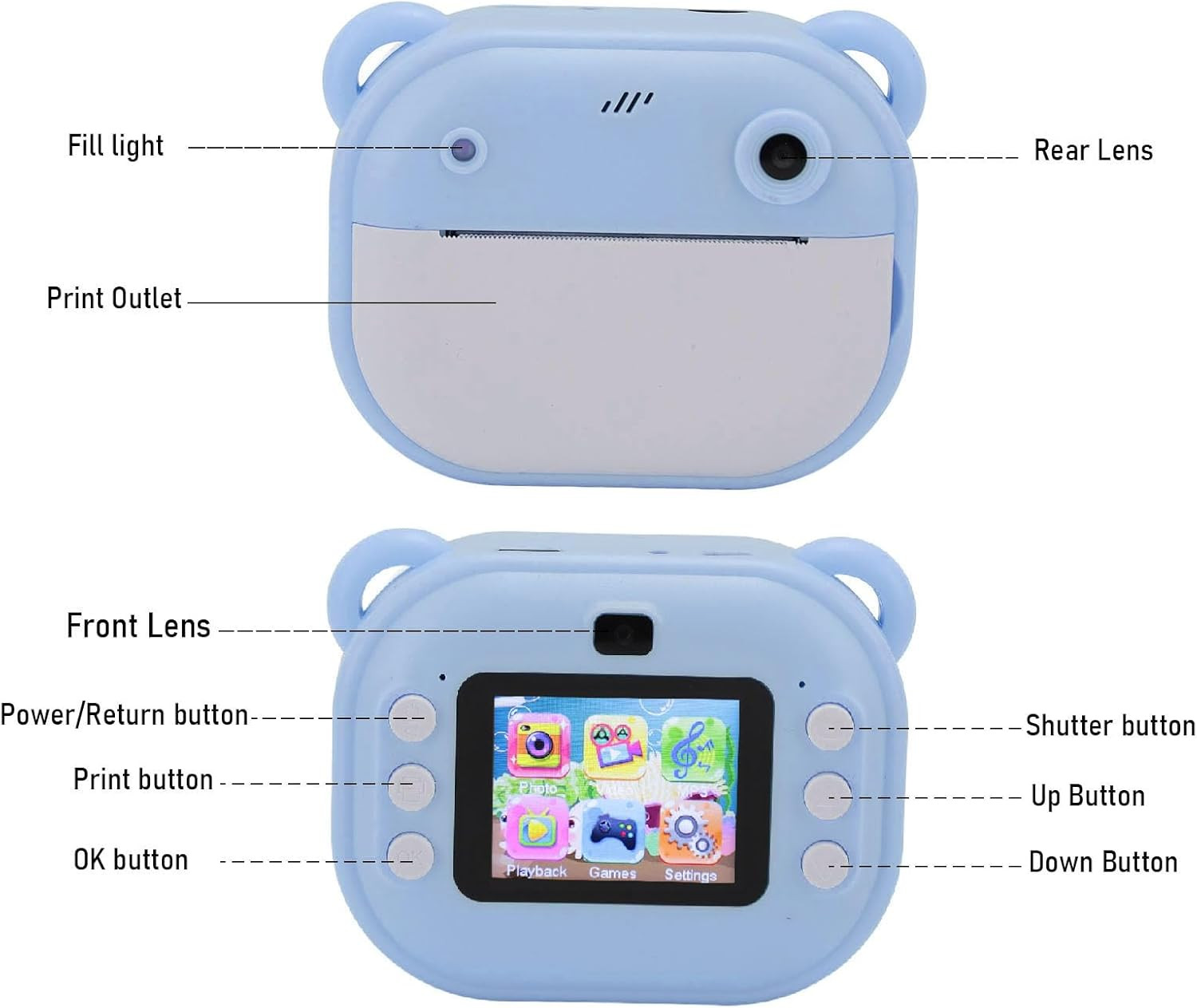 - One Click Printing: With its user friendly design and one click operation, this camera is simple and convenient to use for children, making it easy to print memories on the while maintaining a compact and cute exterior.