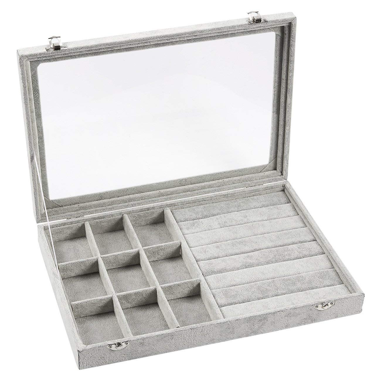 - Lid & Lock – Features a clear glass lid that enables clear display of your stored jewelries while keeping them dust-free. Complete with 2 integrated safety locks for added security