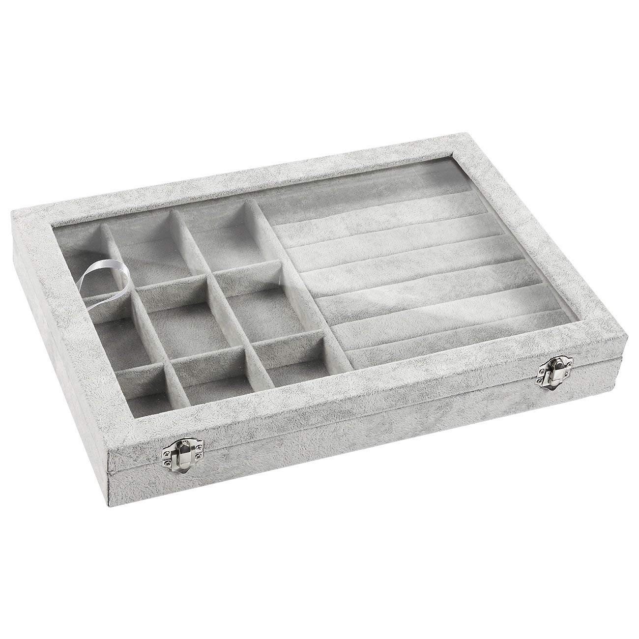 Title : Jewellery Organiser Box Velvet Clear Lid Jewelry Organizer, Ring Earring Bracelets Jewelry Storage Case, Lockable Jewelry Box for Girls Women