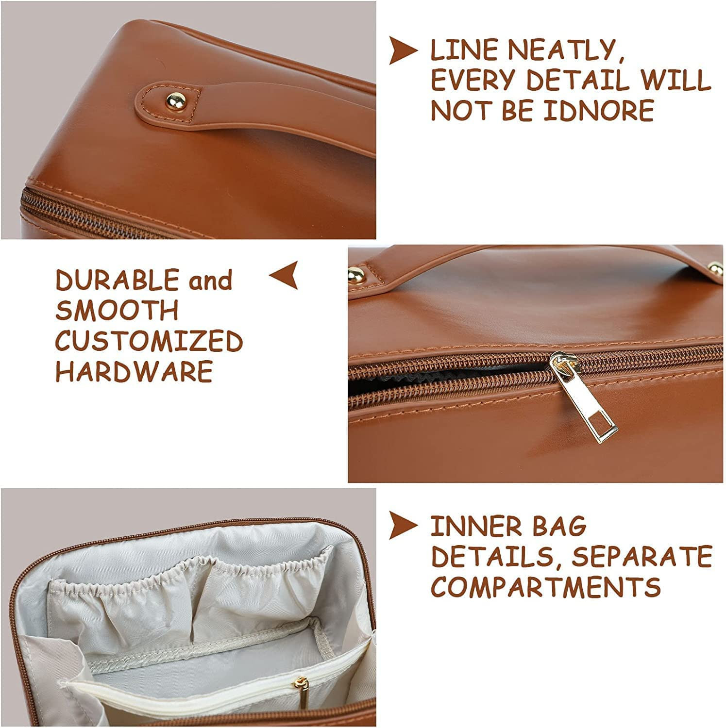 TITLE : Large Capacity Cosmetic Travel Bag, Women’s Makeup Travel Bag Portable Leather Cosmetics Bag, Makeup Storage Bags with Handle and Divider, Wide Opening Cosmetic/Makeup Organizer Bags