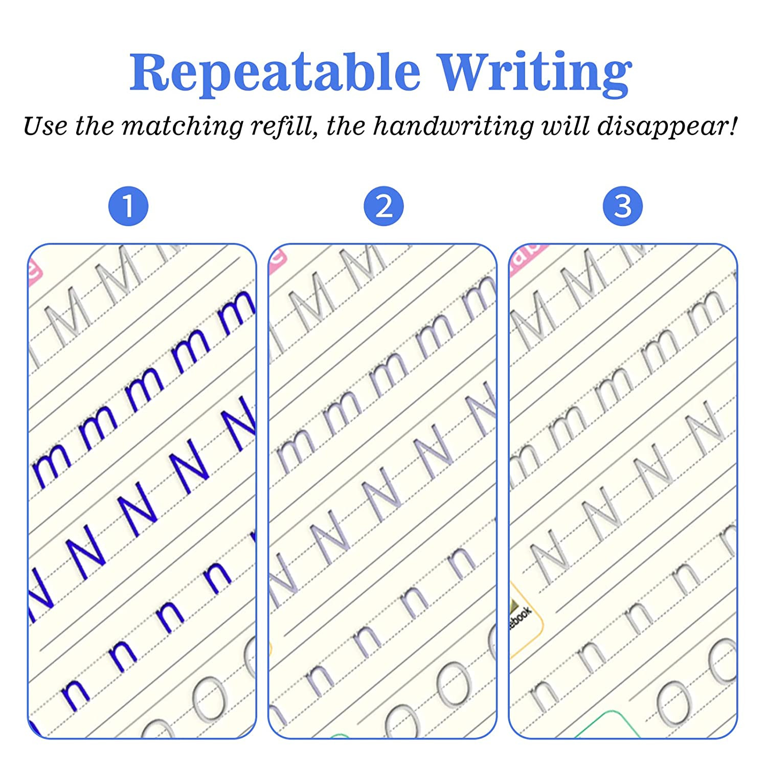 - For each transcript, we offer a set of pencil jackets for you. It’s convenient for children to reuse this copybook because the handwriting will disappear within 15 minutes of writing. It’s includes1 pen holder and 10 refills, children can practice for a long time.