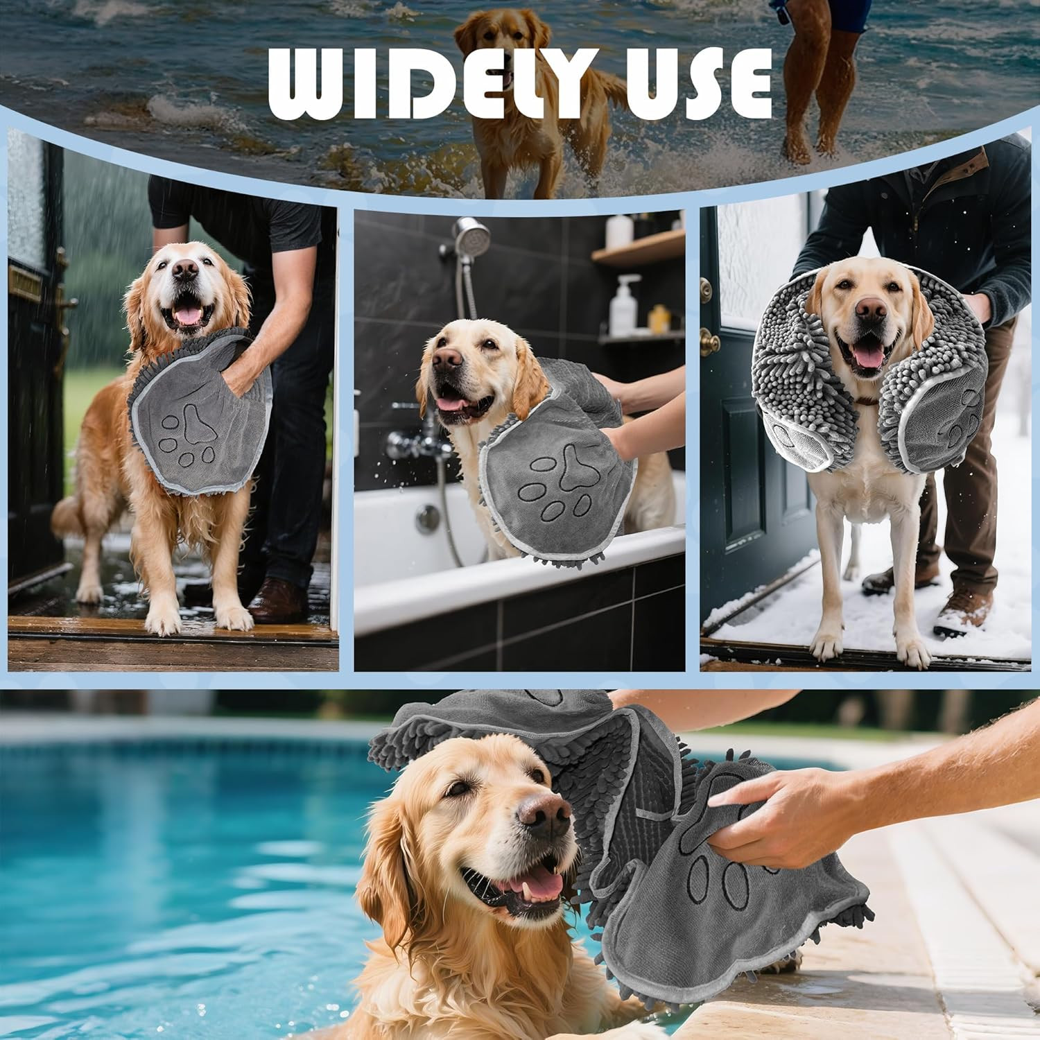 Microfiber Dog Towels for Drying Dogs, Super Absorbent, Soft and Quick Drying Pet Grooming, Doggy Dryer, Quick Dry Dog Towel, Microfiber Super Absorbent Dog Bath Towels for Drying Dogs, Pet Towel with Hand Pockets, Soft & Durable Puppy Towel, Machine Washable-(Grey)