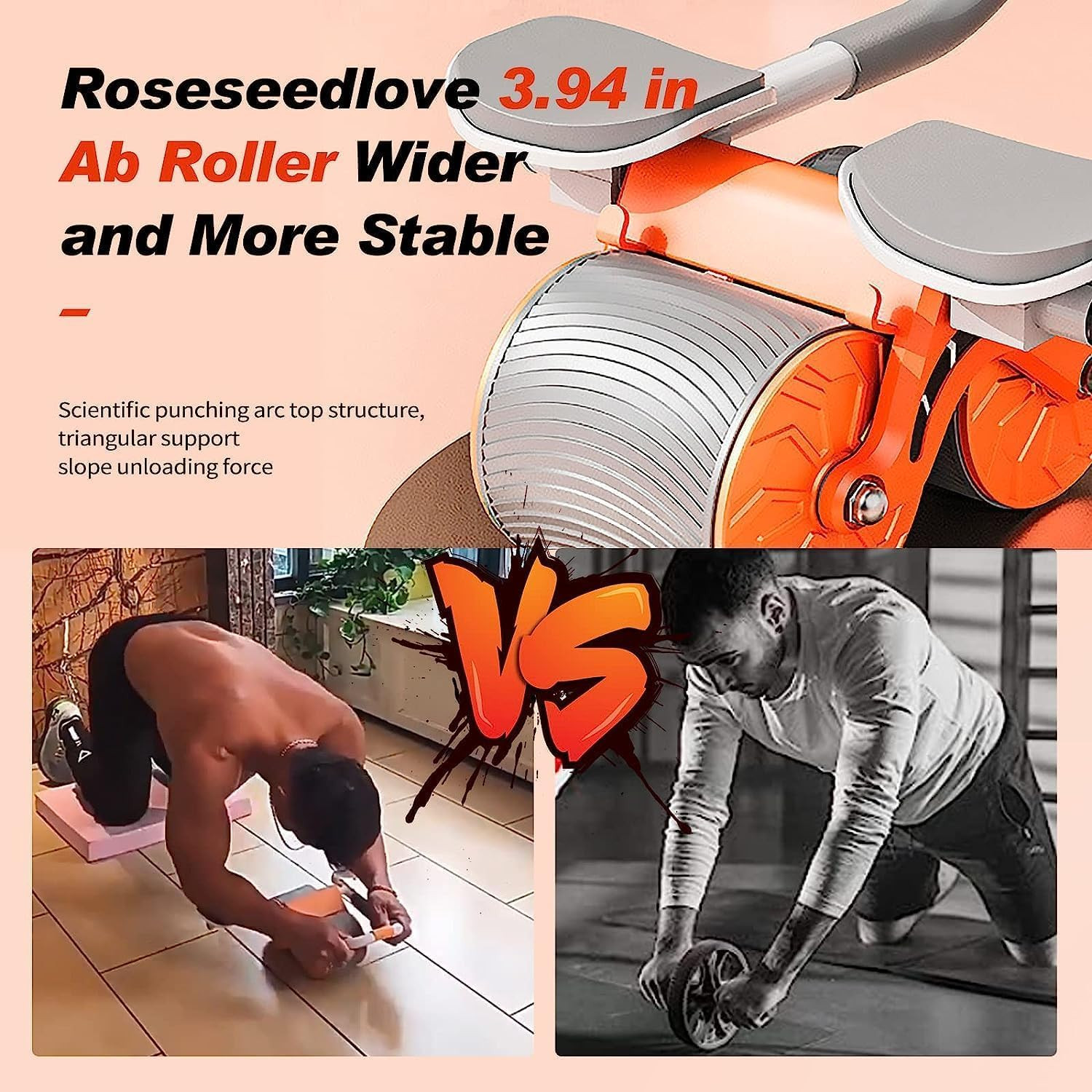 - Double Round Design–The design of 2 rollers can reduce the wheel swing, and two wheels’ built-in springs can prevent the wheel from slipping during smooth exercise. automatic rebound function can protect you from injury during exercise, especially suitable for beginners.