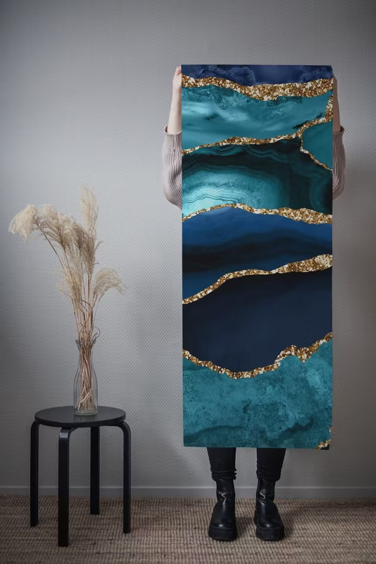 The ocean blue and black marble texture with gold glitter veins creates a stunning and dramatic wall mural. The marble texture is composed of different layers of varying shades of blue and black, creating depth and dimension, with veins of sparkling gold glitter running throughout. The gold veins provide a luxurious and elegant touch, catching the light and adding a shimmering effect to the overall design. The ocean blue and black hues create a calming yet sophisticated atmosphere, perfect for a modern and trendy interior. This marble texture wall mural is a statement piece that is sure to impress and adds a touch of timeless elegance to any space.