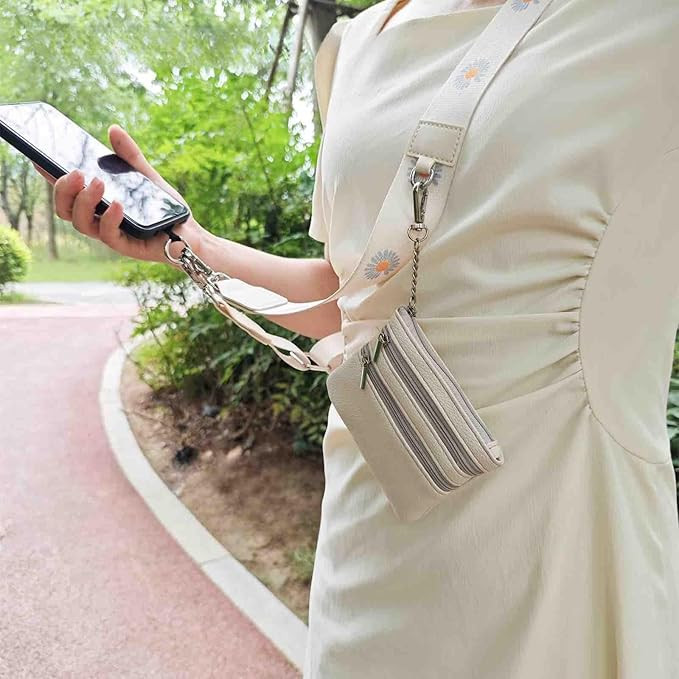 TITLE: Phone Strap with Zippered Pouch, Detachable Clip and Go Strap with Leather Wallet Crossbody Adjustable Chain Lanyard Mobile String for Phones Sling Case, Gift for Women