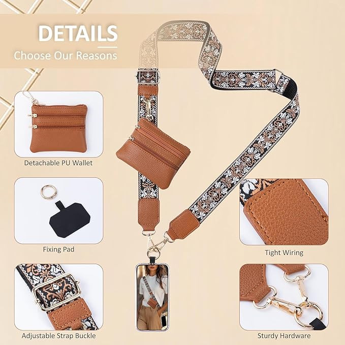 - Detachable & Adjustable: Phone strap equiped with detachable and adjustable shoulder strap. It can be adjusted according to your needs as a crossbody bag strap, wrist strap, neck strap. Ergonomic design makes the phone strap more fit & comfortable to wear
