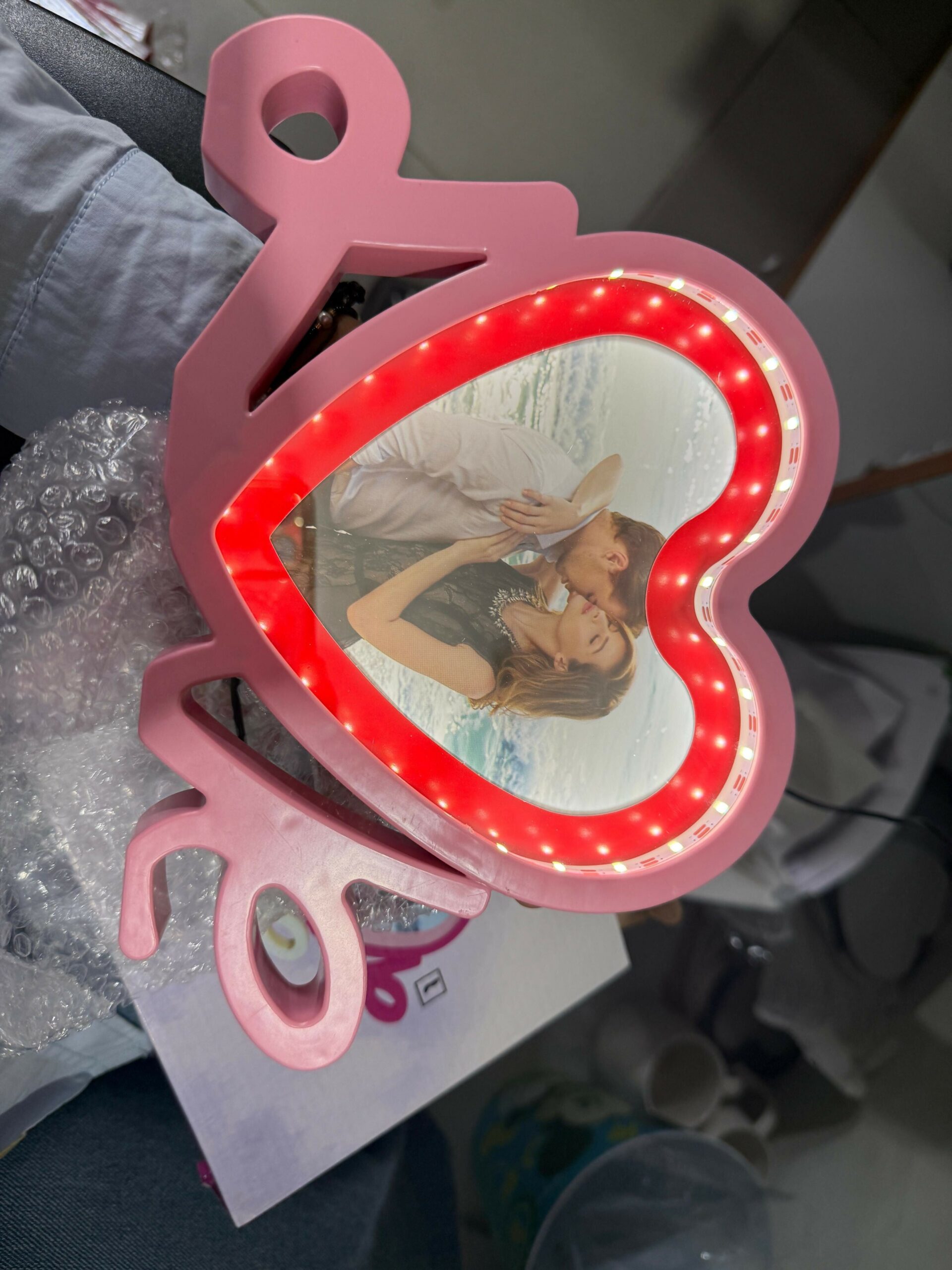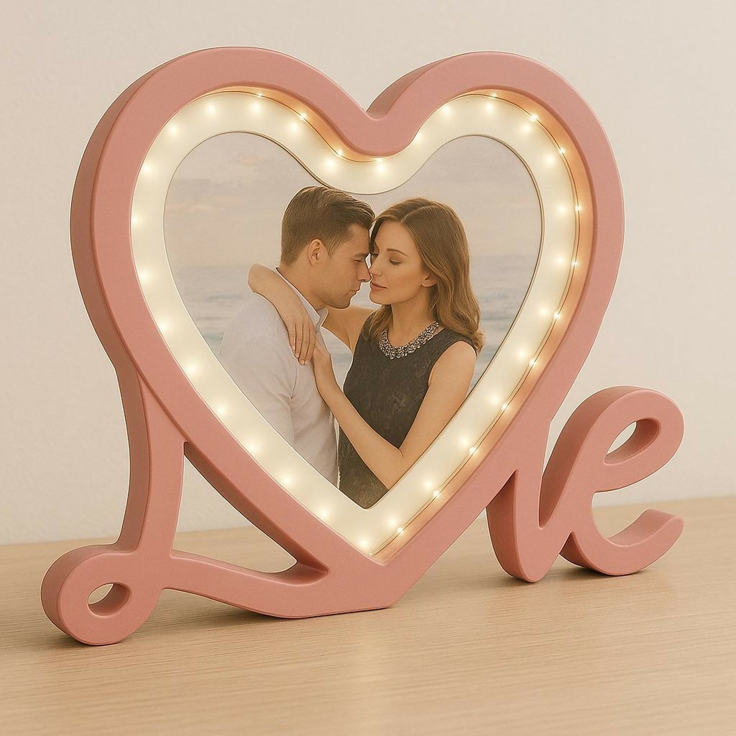 Pink Heart LED Photo Frame with Love Stand – Romantic Couple Gift