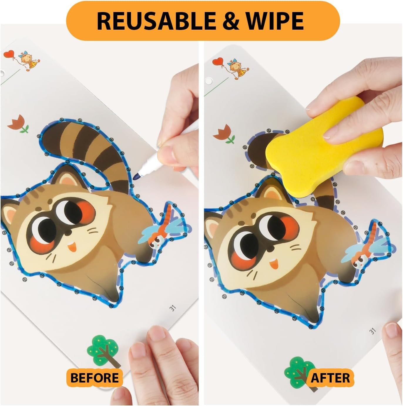 - [Left and right brain development] Simple and brief exercises can ensure early success, identify direction, form and line, and experience hand eye coordination for the first time. The basis of painting is to draw patterns according to the connected numerical order, and train observation and concentration.