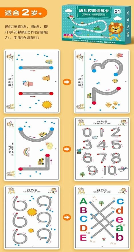 - [Line and shape for beginners] Simple and short exercises can ensure early success, identify direction, shape and line, and preliminary experience of hand eye coordination. It is interesting to draw simple pictures and figures first, which can enhance children’s self-confidence and develop their imagination. It unconsciously supports mathematical figures, symbols and sense of symmetry.