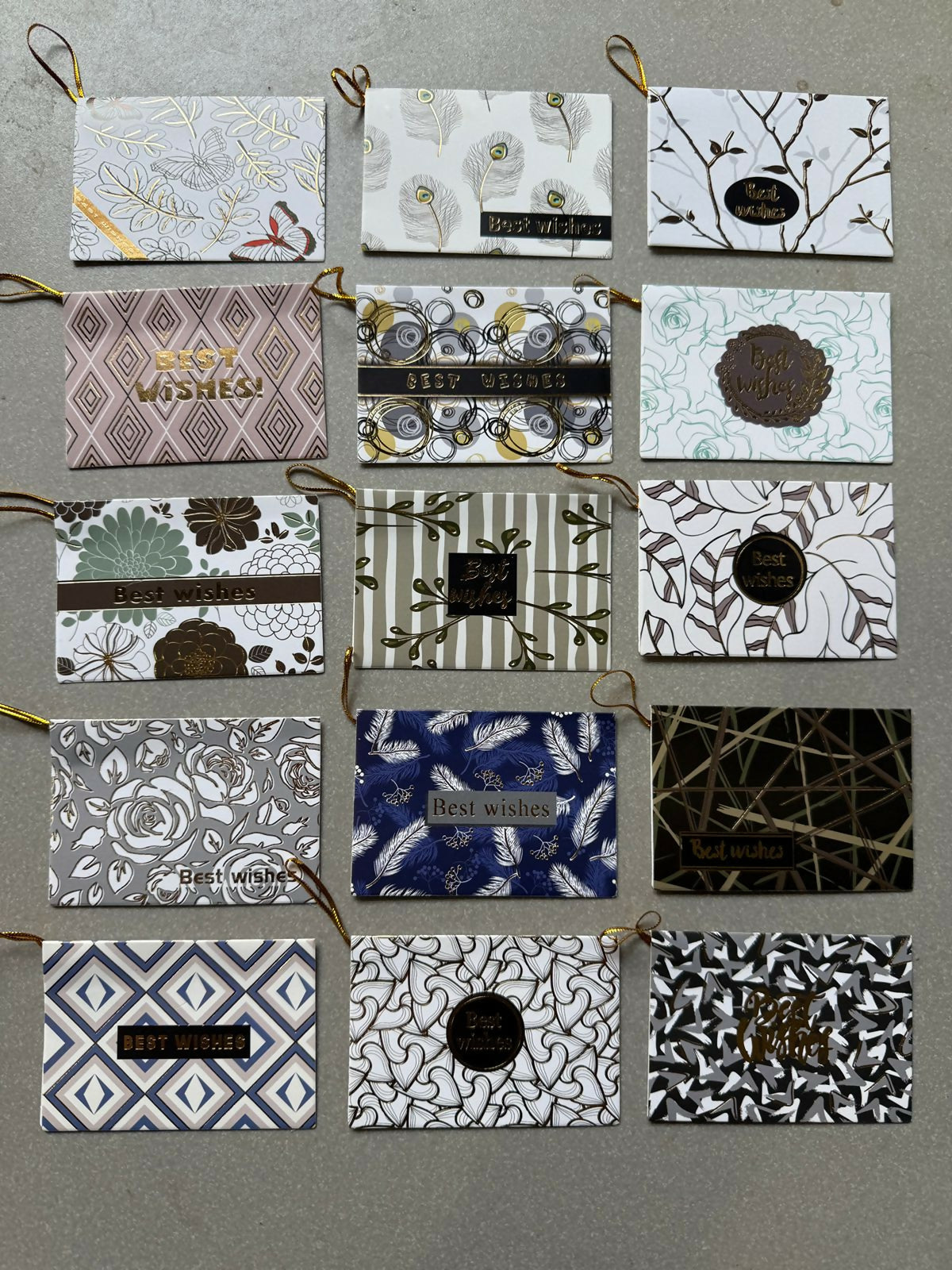 Enhance your gift presentation with these elegant premium gift tags designed to add a classy finishing touch to any present. Each tag features stylish patterns with gold-finish text and comes with a pre-attached string for easy use. Ideal for birthdays, weddings, anniversaries, festive gifting, return gifts, and corporate presents. These tags are compact, lightweight, and suitable for all types of gift wrapping.