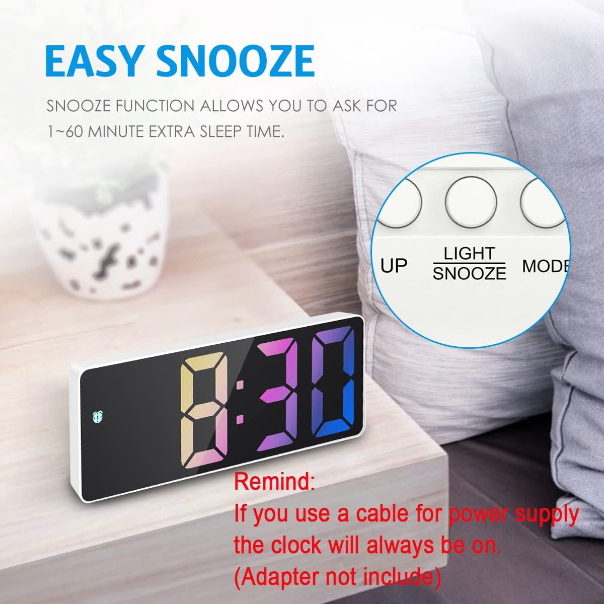 - 【Large LED Display & Mirror Surface】 The digital alarm clock with 6.5″ large screen make it easy to read the time from a different distance. Moreover, you can use the digital clock as a mirror. It is perfect for your bedroom, living room, office, etc.