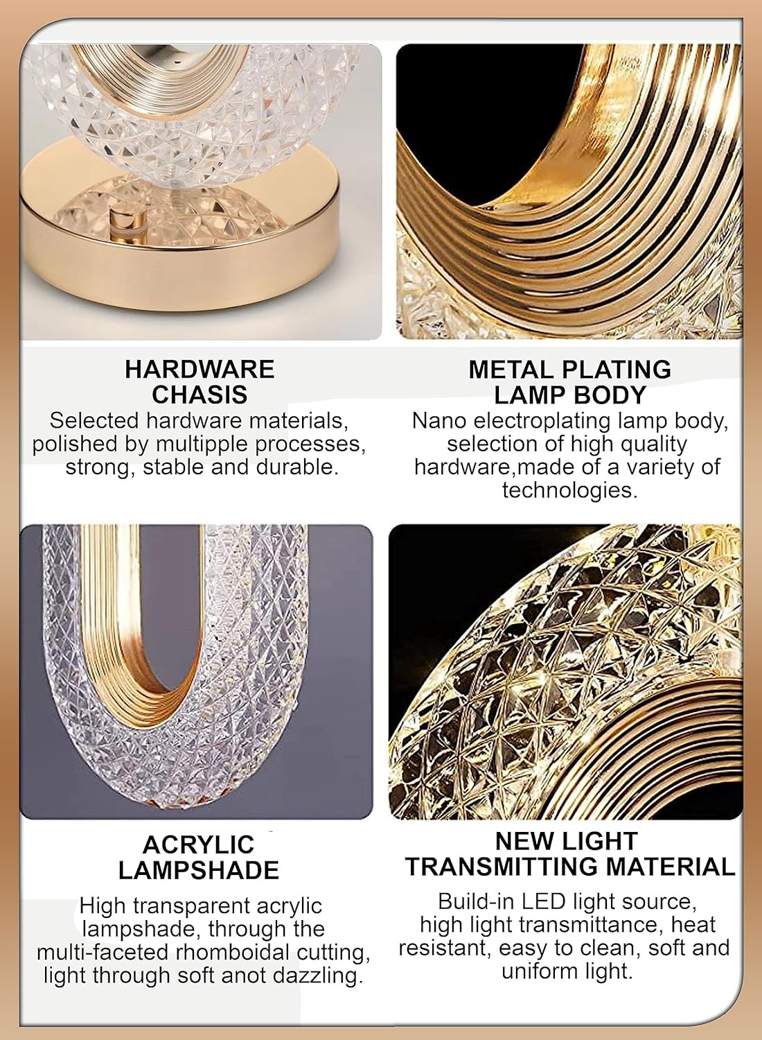 - Unique Shape Lamp: This table lamp has a unique shape of a moon,star,square or round, which looks very beautiful and luxurious when it is lit. Not only can be used for Christmas and festival decoration, but also can be used as bedside lamp to create different atmosphere.