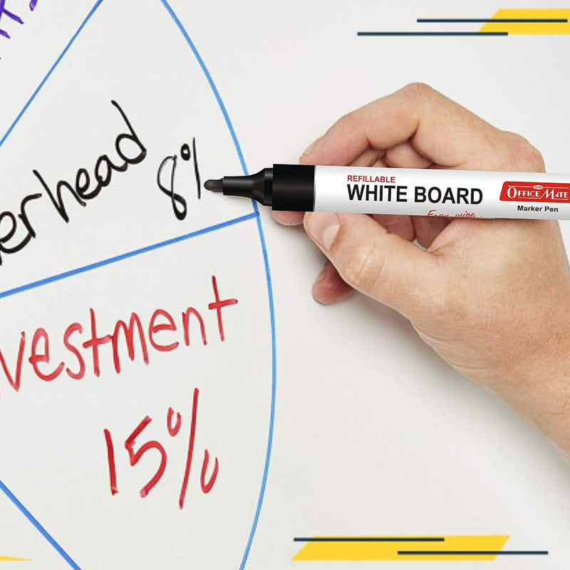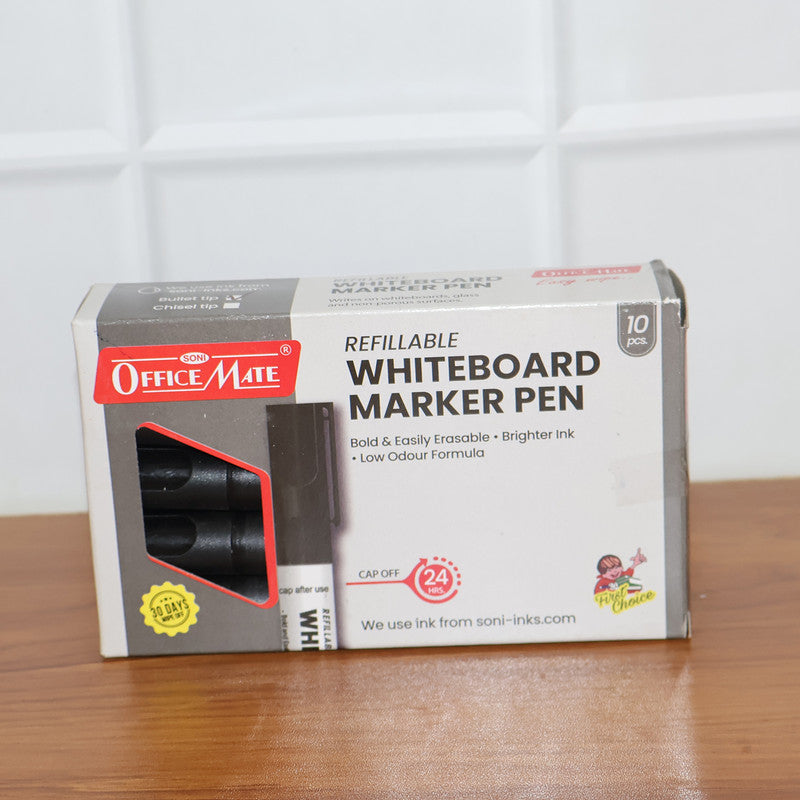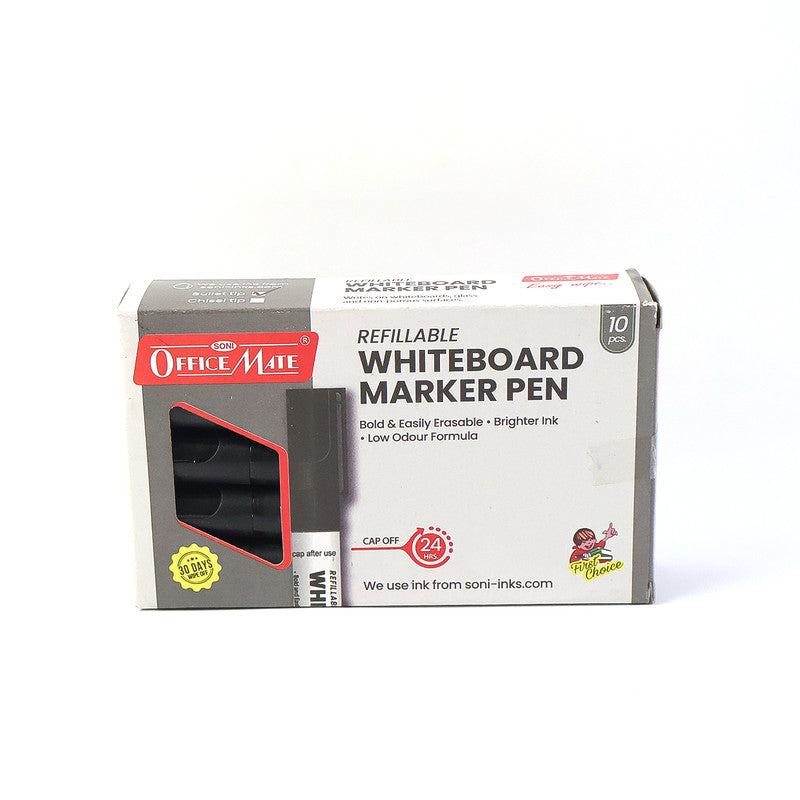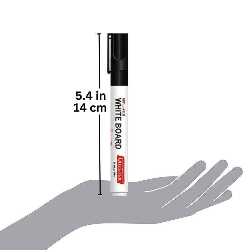 Make your ideas stand out clearly with this refillable whiteboard marker pen set featuring rich black ink for dark, bold, and highly visible writing. Each marker delivers smooth, consistent strokes that are easy to erase without leaving stains or ghost marks on the board. Designed with a bullet tip for controlled writing and neat lines, these markers are ideal for classrooms, offices, meetings, and home use. The low-odour, non-toxic ink ensures comfortable use even during long sessions. With a durable body and refillable design, this 10-piece set offers reliable performance, clarity, and everyday convenience for all your whiteboard needs.