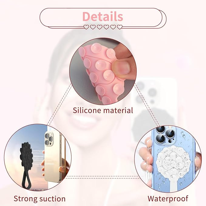 - Suction Cup Design Don’t risk dropping your phone with weak suction cup mounts. Our silicone suction phone holder features strong suction and multiple sturdy independent suction cups for secure grip