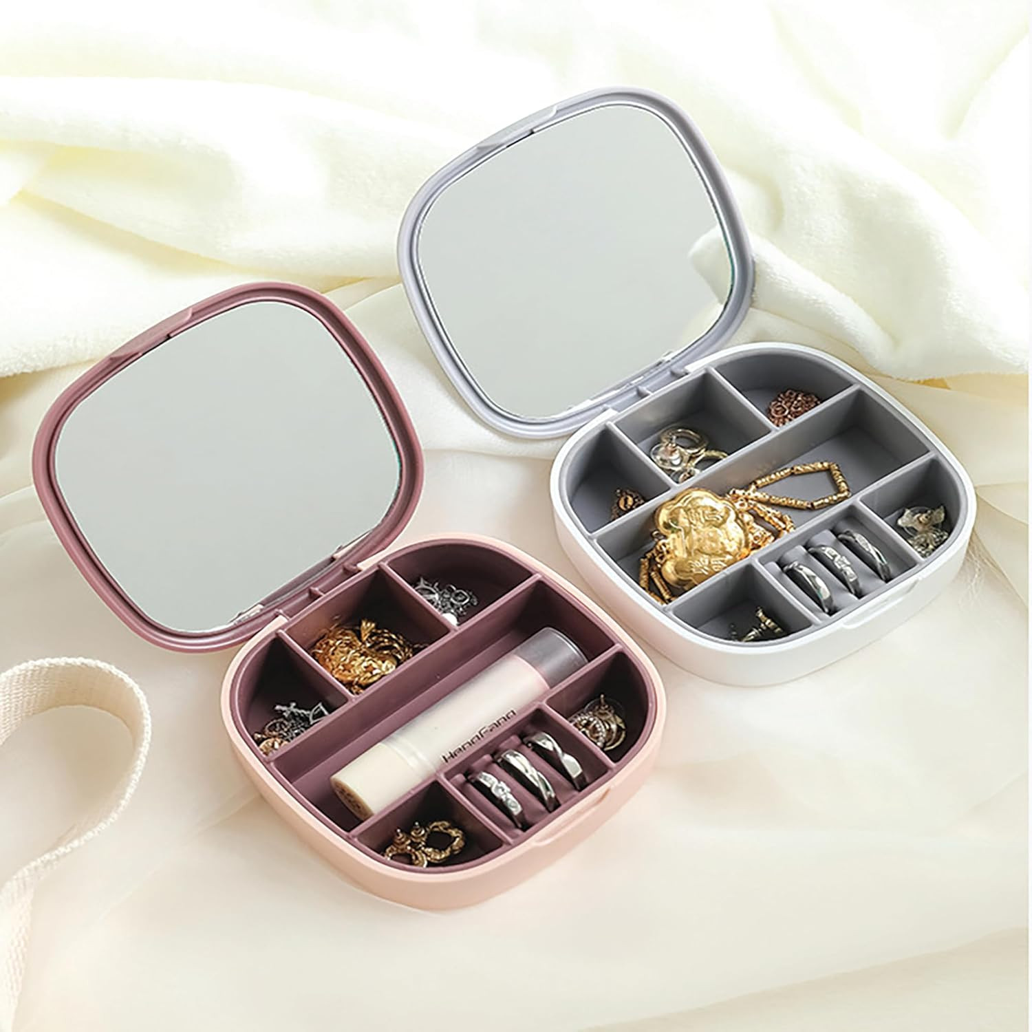 TITLE: Travel Jewelry Box, Small and Portable Jewelry Storage Box with Mirror Earrings, Lipstick Necklace Storage Box Easy to Storage Jewelry Case Mini Cosmetic Holder Container