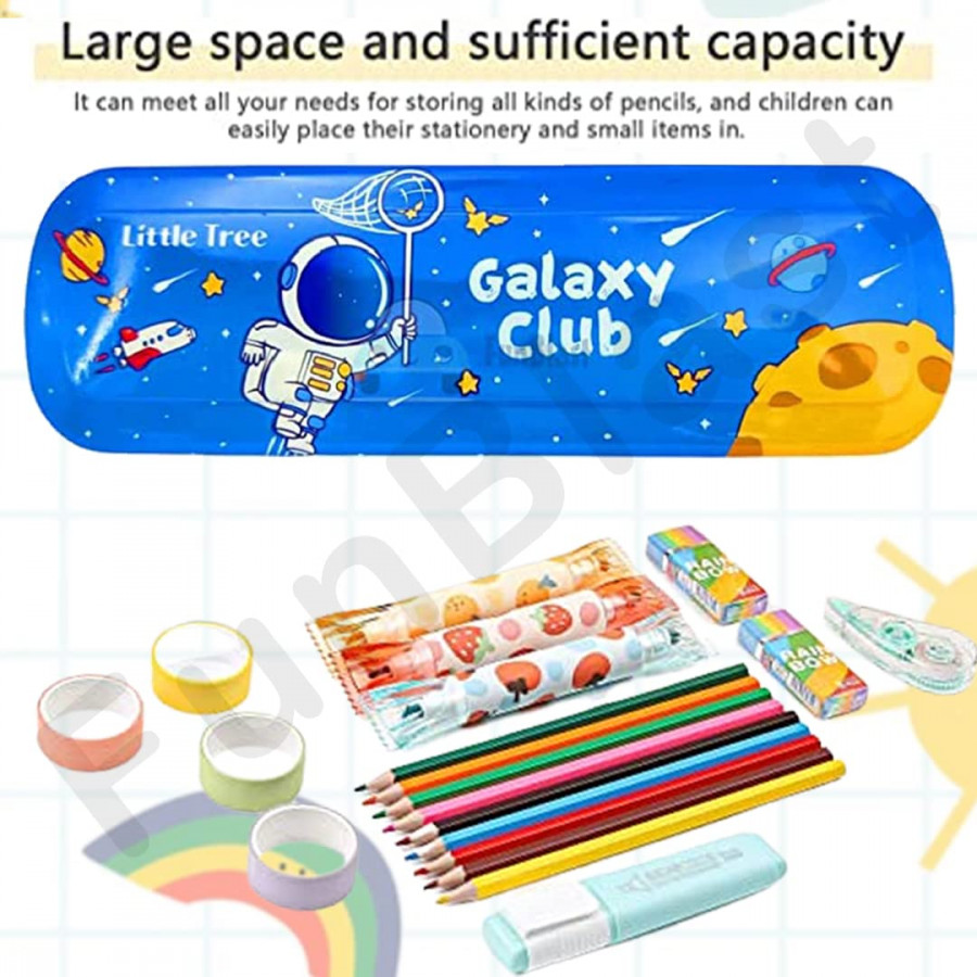 - In the Box – Space Theme stationary items for kids and toddlers includes pencils, erasers, sharpener and pencil box.