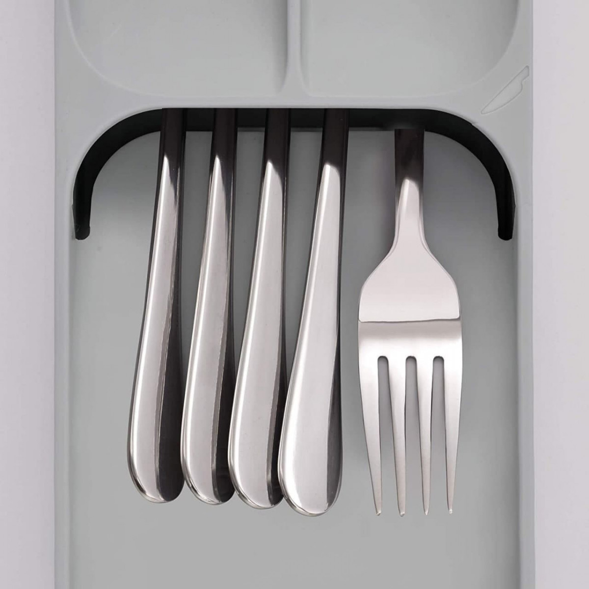 - Includes several compartments for all your cutlery and utensils The base has non-slip feet to keep it in place in your drawer.