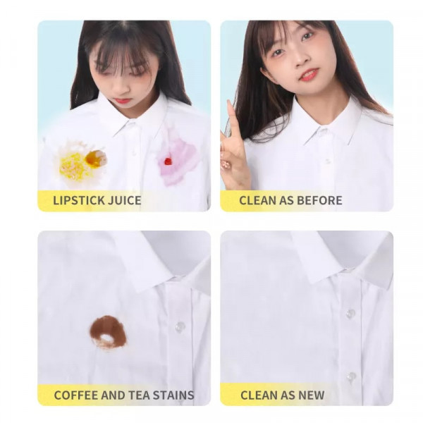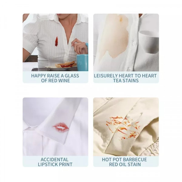 - It can be used for food stains, cosmetic stains, beverages (coffee, tea, wine, milk, cola, etc.), ketchup, oil stains, etc. It is practical and easy to use.
